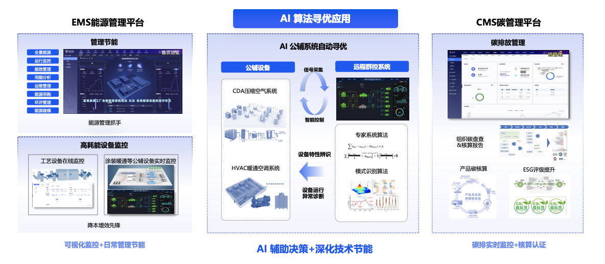 三年来,该平台已成功应用于半导体、新能源、3C制造等领域的100余家工厂,累计为企业降低能耗支出超2亿元,年综合能耗降低 15% 至20%,管理效率提升 50%,减少碳排放超过35 万吨,展现出显著的经济与社会效益。同时,项目还催生了新能源运维、碳资产管理等新职业,每年创造超过8000个就业岗位。
