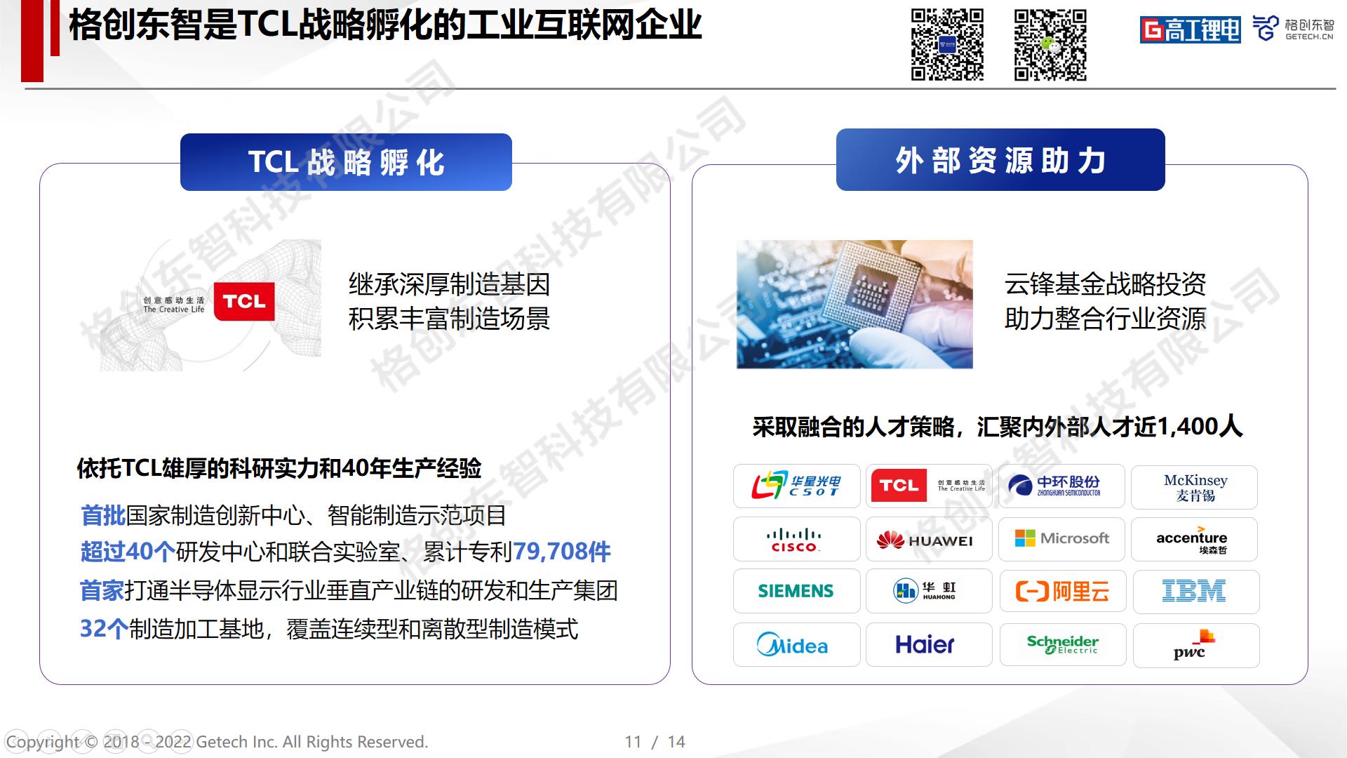 最后一点时间介绍一下bbin宝盈东智。bbin宝盈东智孵化于TCL集团,现在有1400多名员工服务着泛半导体,新能源,3C及汽车行业客户。我刚才讲的很多标杆工厂案例,都是基于我们的工业互联网平台去构建的:从底层数据采集,到物联网平台,到大数据平台,到利用这些数据去做一系列相关的应用,比如设备健康管理、生产管理、品质分析优化,企业运营,节能减排等等,为客户提供一体化解决方案,帮助客户打造行业级智能工厂。