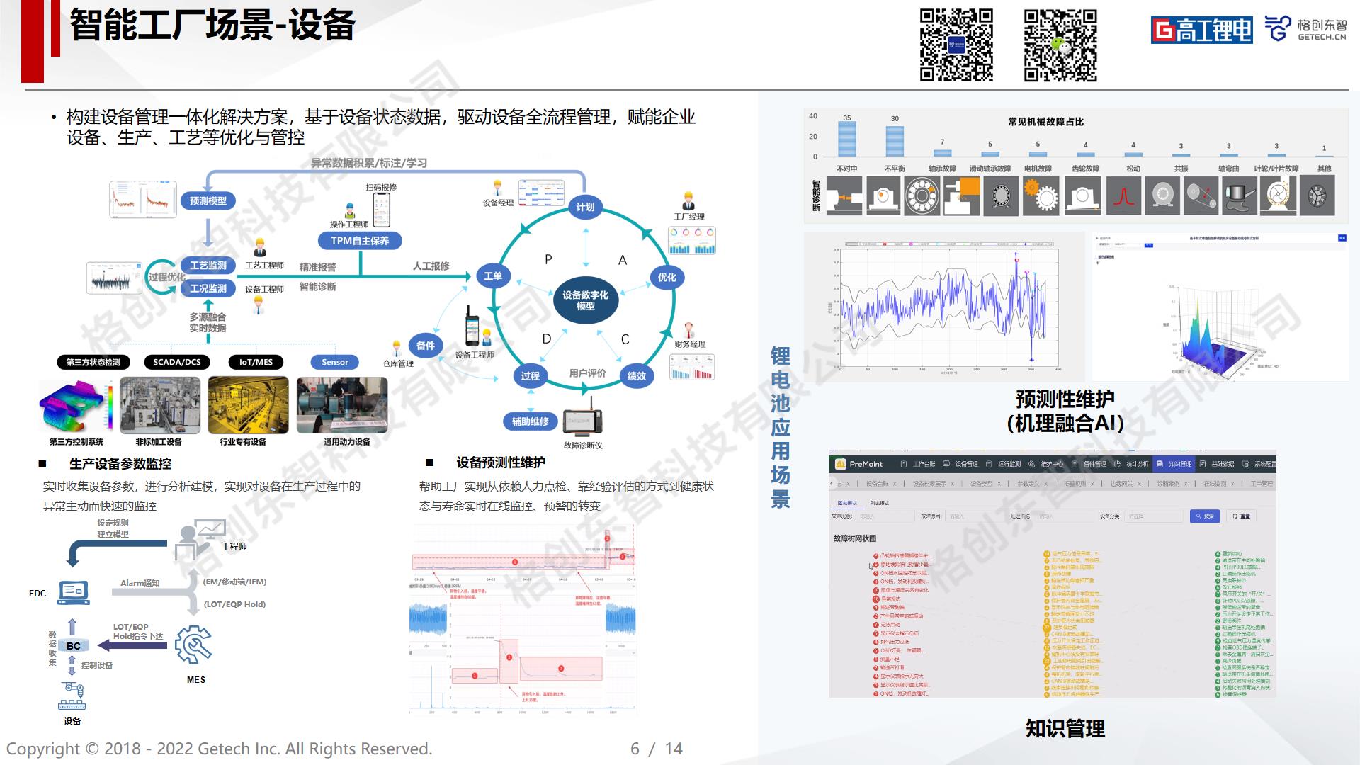 这里举两个例子,一个是针对于锂电池工厂大量存在的旋转类设备预测性维护;基于机理模型与数据模型,我们能够比较精准地快速定位核心设备的零部件是否有异常,是否会影响生产。