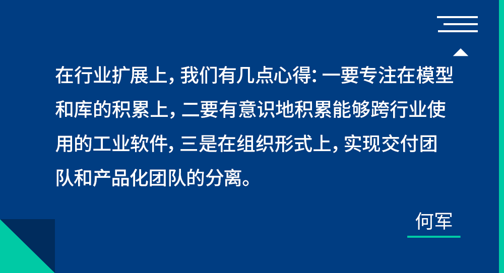 何军:工业互联网平台软件确实存在这类问题,特别是做中大型企业项目的时候,交付方式一定是以项目制为主导。坦白说,我们经历过一些探索,早期刚进入工业互联网领域的时候,我们也认为好的软件公司的产品是以SaaS化、订阅制为主的,但随着对行业的理解越来越深刻,我们发现先下沉做核心工业软件的开发实施,对客户有深入了解后,才有机会围绕他们的业务创造更具价值的产品,这是不能跳跃式发展的。
