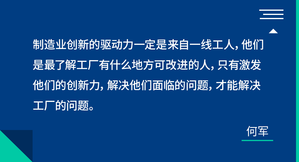何军:制造业创新的驱动力,一定是来自一线工人,因为他们是最了解工厂的人,只有激发他们的创新力,解决他们面临的问题,才能解决工厂的问题。