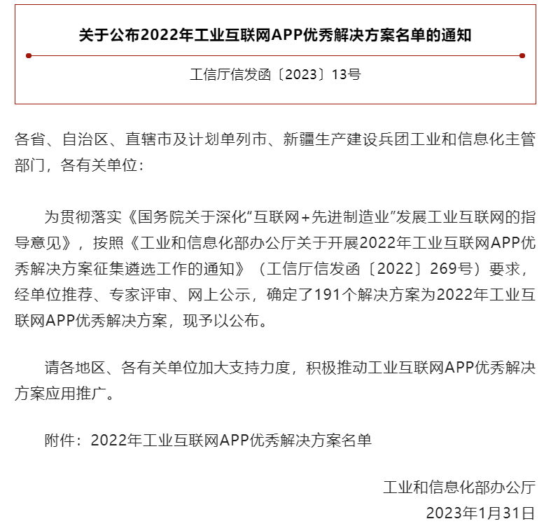 191个上榜!2022年工业互联网APP优秀解决方案名单公布