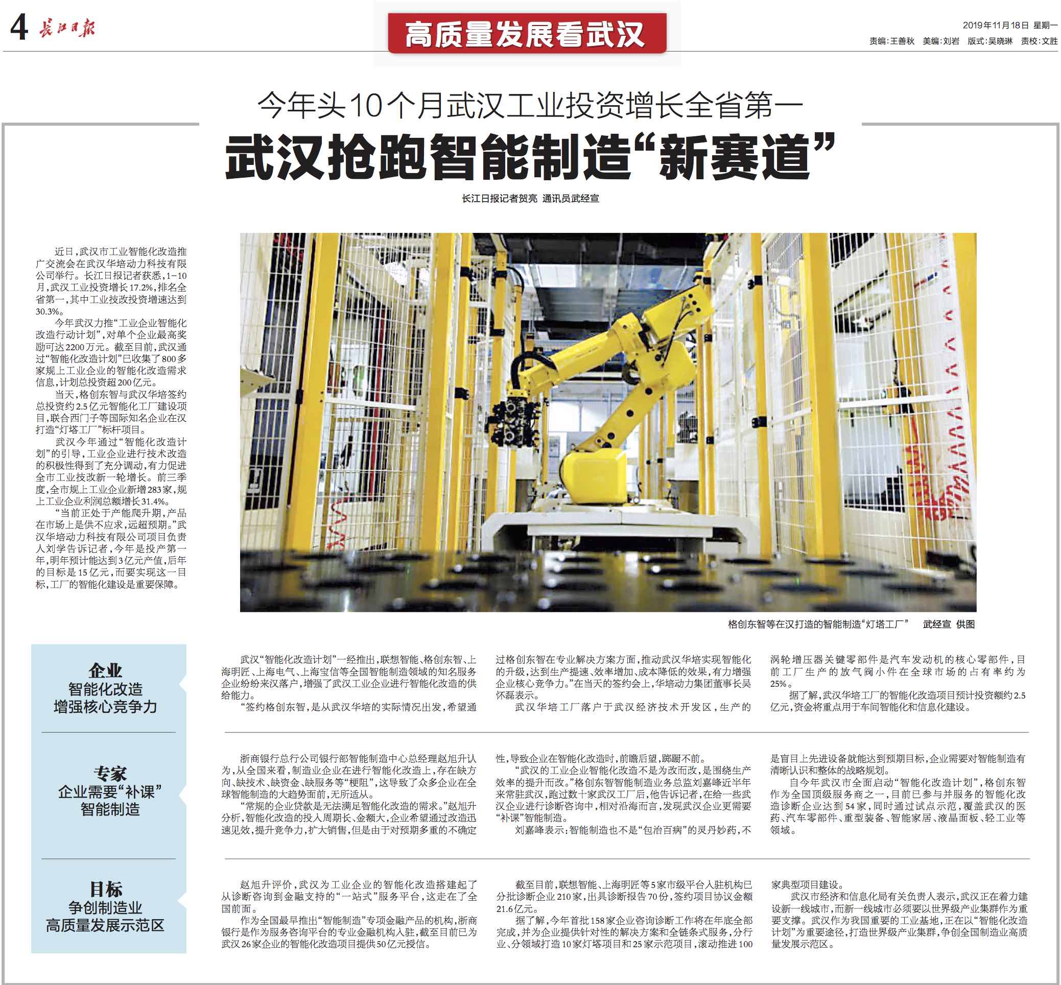 长江日报-长江网11月17日讯(记者贺亮 通讯员武经宣)近日,武汉市工业智能化改造推广交流会在武汉华培动力科技有限公司举行。记者获悉,1-10月,武汉工业投资增长17.2%,排名全省第一,其中工业技改投资增速达到30.3%。