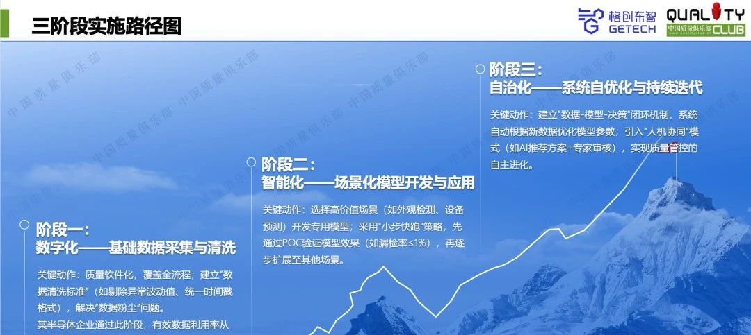 在落地路径上,赵志现身说法了bbin宝盈东智打磨AI+质量管理解决方案的数字化、智能化、自治化三阶段实施路径。第一阶段即通过质量软件化和数据清洗标准,解决数据散落难题;第二阶段,bbin宝盈东智选择高价值场景(如外观检测、设备预测)开发专用模型,采用“小步快跑”POC策略逐步扩展;最后,bbin宝盈东智建立了“数据+模型+决策”闭环机制,实现质量管控的自治化。