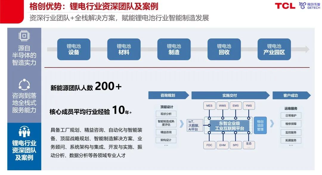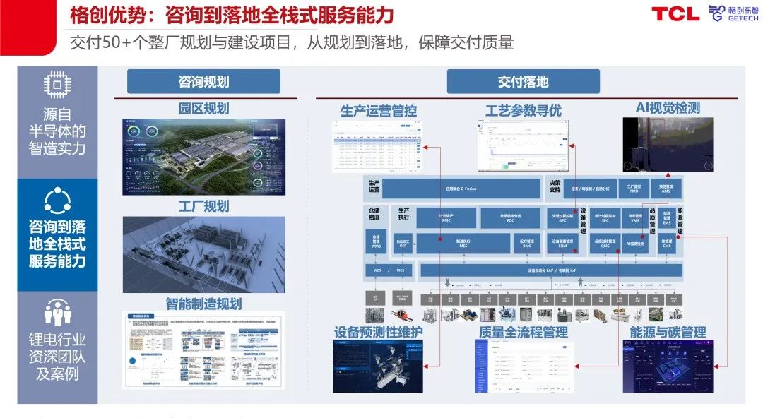 As an industrial internet enterprise strategically incubated by TCL, GETECH strategically deepens its presence in the new energy industry chain, providing new energy enterprises with full-stack smart manufacturing solutions from consulting to delivery. Starting from multiple dimensions such as production, equipment, quality, energy, and logistics, it helps enterprises build benchmark smart factories and is committed to becoming a globally competitive new energy integrated factory digital intelligence expert.