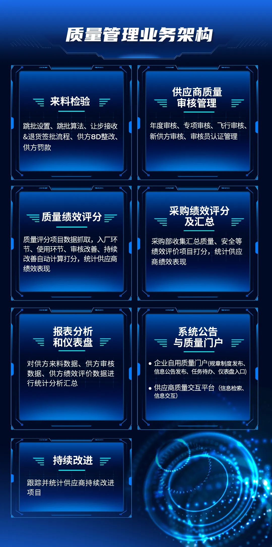 Tracing quality data requires manual recording and reminders; inspection rules and processes are difficult to implement, with poor timeliness; Quality inspection data is recorded offline, making it difficult to refine data formats and perform secondary summary analysis; Unable to mine quality data of incoming materials during the process, hindering effective tracking and improvement of product quality; Quality inspection data is difficult to associate with suppliers, making it impossible to evaluate suppliers, affecting requirements and selection; Supplier control and announcement delivery lack effective records.