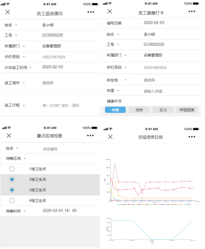 Starting from February 10, enterprises will gradually resume work and production. Units with large gatherings of people will become key areas for epidemic prevention and control. Traditional methods of epidemic information collection and management often rely on manual filling, manual summarization, and manual tabulation, which not only require significant manpower but are also inefficient and prone to errors, leading to oversights in epidemic prevention work, endangering enterprise safety, and affecting normal work and production resumption.