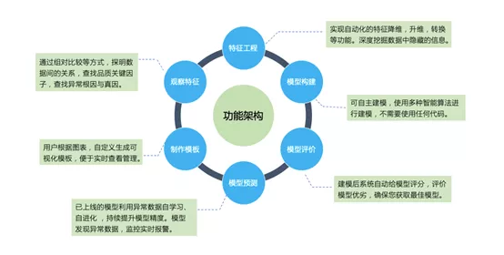 In terms of functional architecture, GeekMind is divided into six layers: data preprocessing, feature mining, model building, model management, online prediction, and project management. It enables automated data preprocessing, feature dimensionality reduction, transformation, etc., and can use existing machine models for parameter tuning, modeling, optimization, as well as online analysis, monitoring, and warning of anomalies. The model management and project management functions allow users to review any modeling node and manage cases and models uniformly by project.