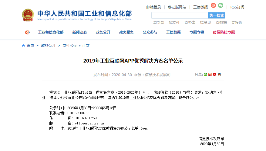 At the end of 2019, to implement the State Council's 'Guiding Opinions on Deepening the 'Internet + Advanced Manufacturing' to Develop the Industrial Internet', MIIT launched the 2019 industrial internet APP excellent solution collection activity, to strengthen the summary of typical experiences and promotion of excellent cases, and promote the construction of the industrial internet APP ecosystem.