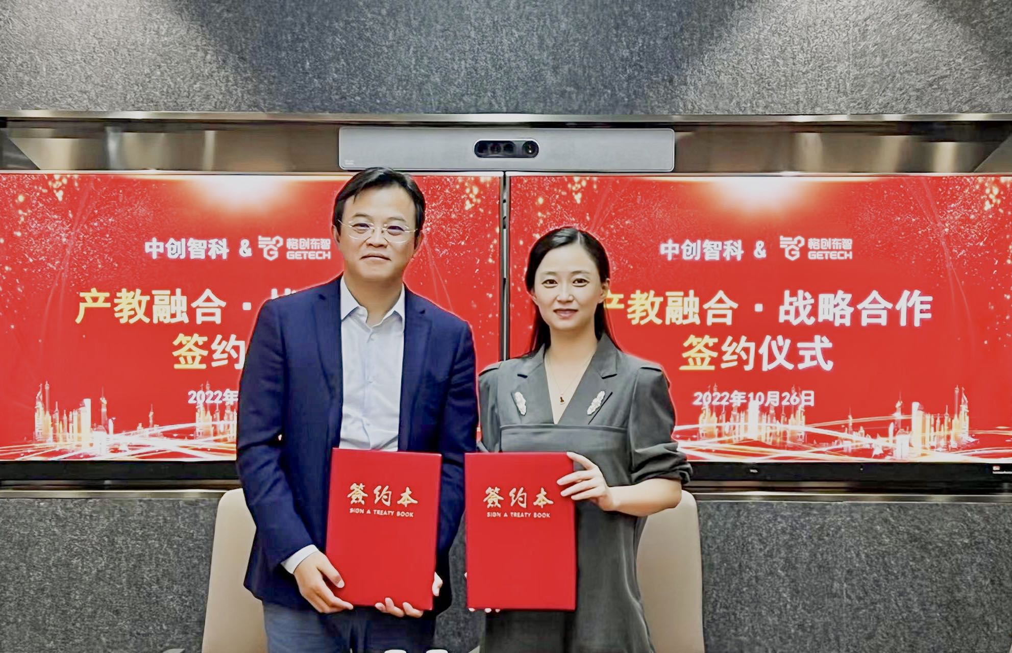 *GETECH Technology Co., Ltd. CEO He Jun (left) and Guangdong Zhongchuang Zhike Technology Co., Ltd. General Manager Zhou Manni (right) attend the strategic cooperation signing ceremony
