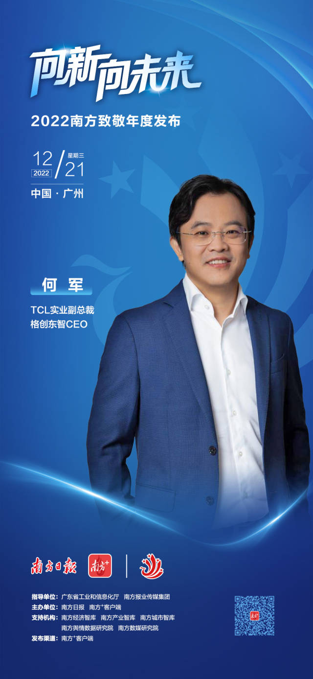 "What I understand by 'manufacturing taking the lead' emphasizes technological innovation and the development of the digital economy, driven by demand-side manufacturing, where manufacturing will become the main body of innovation. GeChuang DongZhi will focus on semiconductor manufacturing as a breakthrough, using the industrial internet to promote high-quality development in manufacturing." During the "Towards New Futures—2022 Southern Tribute Annual Release" event, He Jun, Vice President of TCL Industries and CEO of GeChuang DongZhi, stated in an exclusive interview with Southern Daily and Southern+ reporters.