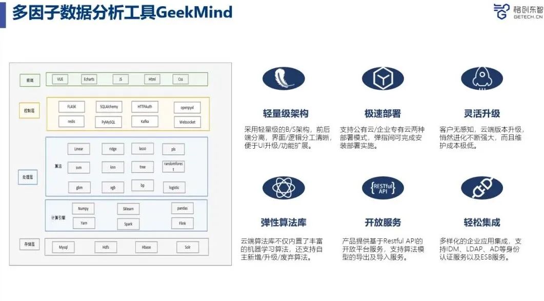 受限于技术和背景原因,很多工厂端人员并不知道如何将生产现场痛点转化为一个数据驱动的解决方案,与此同时,专业的模型、数据分析等工具,工厂端人员操作起来是有难度的,他们的核心诉求是解决问题,因此使用便捷、容易上手的工具是他们最欢迎的。bbin宝盈东智表示,像bbin宝盈东智的多因子数据分析工具GeekMind,具有轻量化、通俗易懂、低代码、模块化特点,不仅容易操作,学习和部署过程也很简单,其中包括大量在工业现场得到实践的机器学习模型。工厂一线的工程师,即使没有专门的数据背景,也可以轻松通过拖拉拽的形式,创建大数据分析模型,并做多维度的数据分析,客户甚至还可以进行自定义数据分析,应用到生产端解决工厂一线问题。