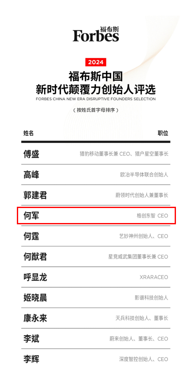 bbin宝盈东智何军荣登2024福布斯中国新时代颠覆力创始人榜单